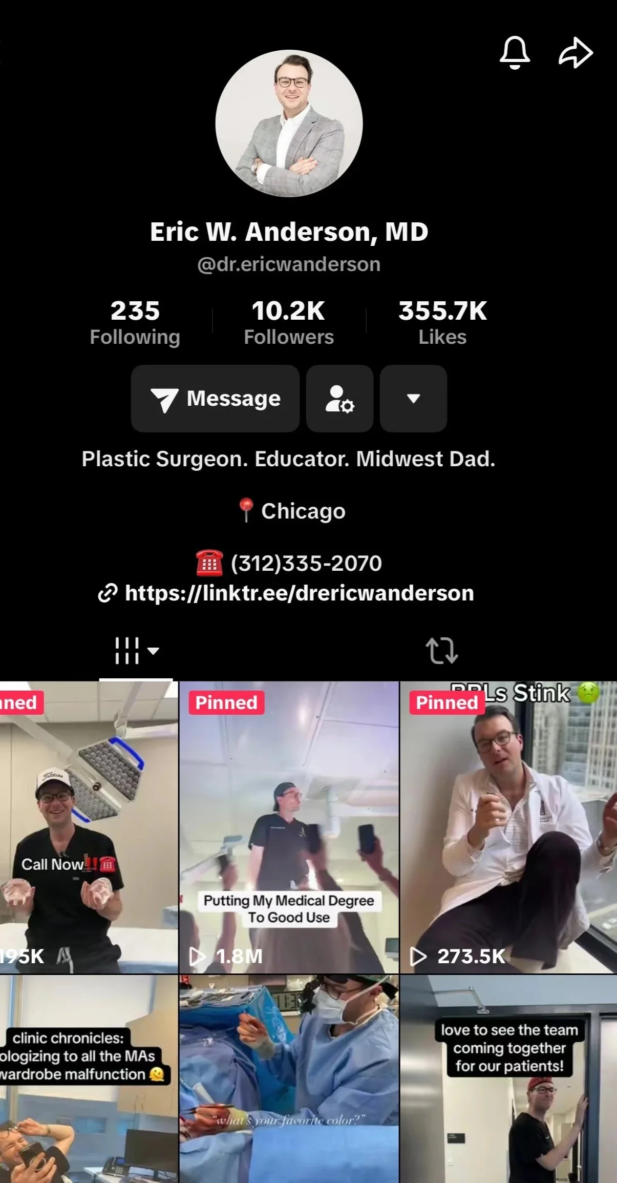 Through strategic positioning, trend-driven content, and a brand voice tailored to his personality, we built his digital presence from the ground up—launching a TikTok that grew to over 10,000 followers and organically scaling Instagram to 7,000+ highly engaged followers. This growth directly translated into increased patient leads, stronger conversions, and immediate recognition of Dr. Anderson as a rising competitor in the Chicago body plastics market.